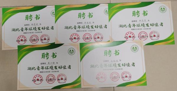 获此殊荣的21级环境工程本4班聂小瑜表示,从进入大学以来一直秉持绿色、环保理念积极参加各类环保活动,一路走来虽然比较辛苦,但通过自身努力,影响和带动了身边一大批同学及朋友参加绿色环保行活动,对自身所学的环境工程专业知识也是一种延伸和拓展,也达到起到了学以致用的目的。她认为,被聘为“湖北省青年环境友好使者”,既是一种的荣耀,更是一份责任。后期将以此为契机,带动身边更多的人参与到各类环保公益活动,为生态环境保护贡献出自己的力量。