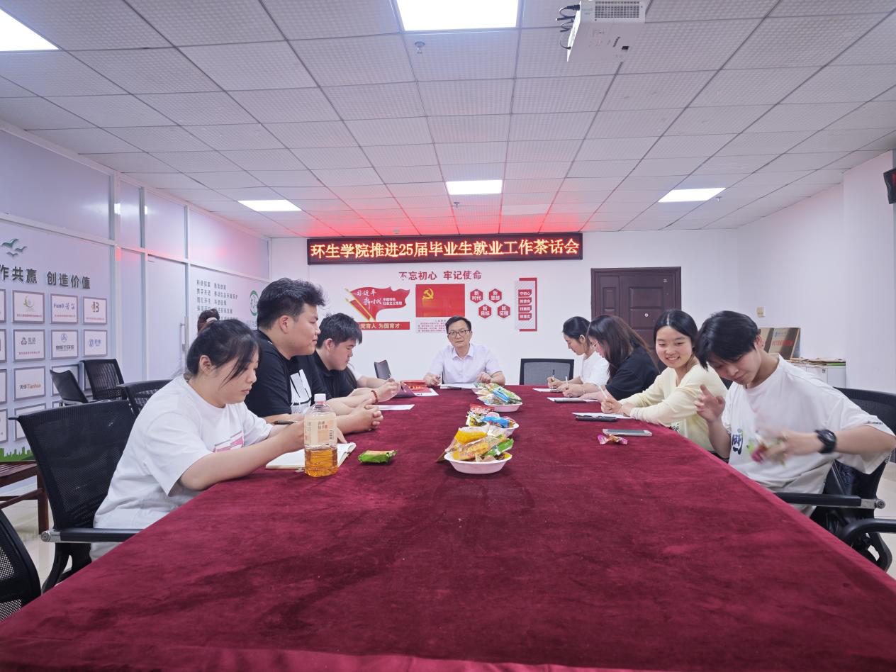 为进一步促进环生学院25届毕业生就业工作,2025年4月29日晚上,环生学院召集25届毕业班班长及团学主要学生干部在综合楼1118会议室召开推进25届毕业生就业工作茶话会。环生学院党总支副书记王强、25届毕业班辅导员杨洪影出席了此次会议。