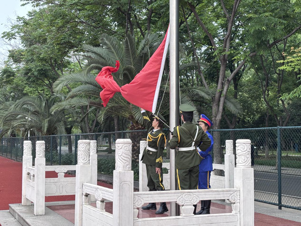 2025年5月26日上午7点,环生学院全体政工老师、24级全体学生、院学生会干部、学生党支部入党积极分子及学生(预备)党员共计300余人,参加了学校校团委组织的第15周升旗仪式。