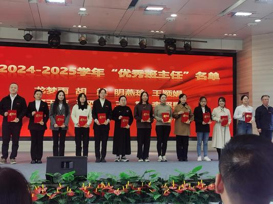 图为学校“优秀班主任”表彰大会颁奖现场:左二魏娜老师;左四李嫚老师;左五李超男老师