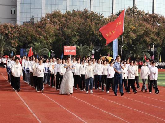 紧随其后的教师方阵同样令人瞩目,他们身着统一服装,精神抖擞。“环生更旺,勇争第一!”的口号响彻运动场,手中的牌子拼出鲜明字样,充分展现了我校教师队伍朝气蓬勃、锐意进取的精神风貌。
