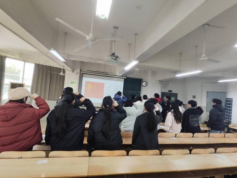 会议伊始,全体学生党员佩戴党员徽章,面向党旗庄严列队,在学生党支部书记王雯瑄老师的领誓下,举起右拳、齐声宣誓。铿锵有力的誓言回荡在会场,既是对入党初心的重温回望,也是对使命担当的再次叩问,让每一位学生党员在庄严仪式中接受深刻的党性洗礼。