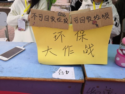 现场有关于餐盘回收的宣传材料,同时开展了环保回收的活动,凡自觉回收餐盘并转发有关此次活动主题内容的同学可获得奖品一份,此外参与者的通过互动可辨别可回收垃圾和不可回收垃圾的分类方法,回收效能,参与环保的意义等知识。