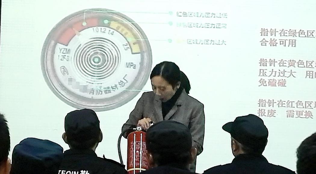 针对电器起火案例,高老师强调了选择干粉灭火器的性价比,并现场演示了30秒内取到干粉灭火器并打开使用的过程,还提醒大家应尽量避免对着人或精密仪器喷射,因其对人的皮肤和精密仪器有腐蚀作用,生动而有趣。