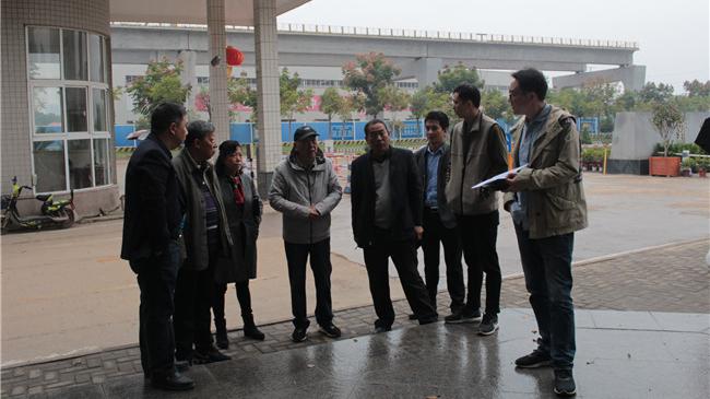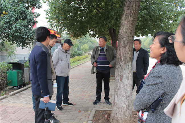 左四为园林顾问王传义先生,校领导桂裕清、后勤管理部一行现场陪同