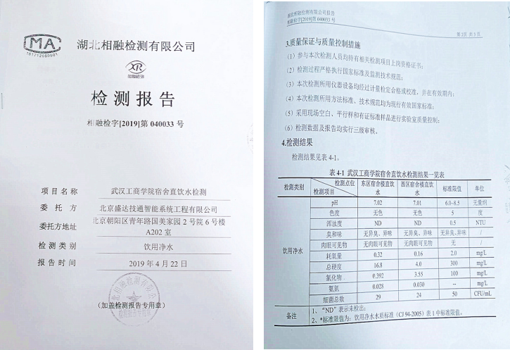据悉,此次检测工作委托湖北相融检测公司进行,正式报告将公布宿舍直饮水的检测结果。考虑到方便学生查阅等因素,中心管理人员已经通知各楼栋管理员在饮水机旁直接张贴检测报告的复印件。