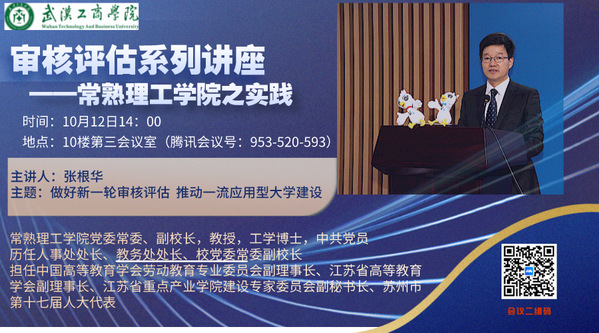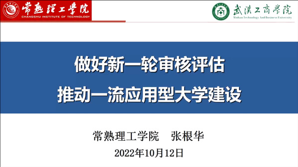 新闻中心讯(特约记者 王志芳)为进一步做好学校本科教育教学审核评估准备工作,深化对审核评估的指导思想、基本原则、指标体系和审核要点等理解,10月12日下午,BB贝博艾弗森官方网站特邀常熟理工学院副校长张根华开展审核评估线上讲座。学校副校长张俊、党委副书记左宗文、校长助理亓小林以及各职能部门负责人、各院(部)院长(主任)、各学院教学副院长聆听了讲座。讲座由亓小林校助主持。