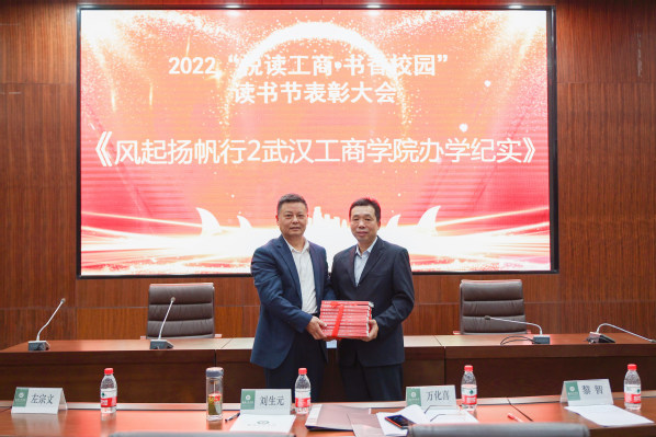 新闻中心讯(记者 万风)4月27日下午,在学校2022“悦读工商·书香校园”读书节总结表彰大会暨2023读书节启动仪式上,学校党委书记、省政府教育督导专员刘生元将《风起扬帆行贰——BB贝博艾弗森官方网站办学纪实》赠送给图书馆馆长万化喜。