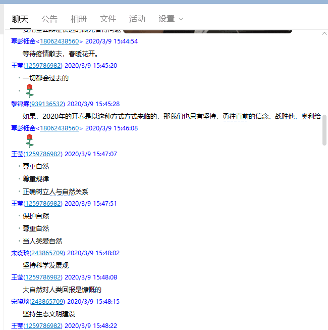 此次防控疫情工作的开展,增强了疫情期间党支部的凝聚力,为支部党员抗击疫情提供了精神动力。党员们表示,此次活动感受到了中国力量,体会到了党员同志的担当,今后将牢记初心使命,坚定发挥党员先锋模范作用,带头执行和遵守学校在疫情期间的相关要求,为打赢疫情防控战贡献自己的力量。相信在党中央的坚强领导下,在全国人民的共同努力和配合下,我们一定可以取得疫情防控战的最终胜利。疫病无情,人间有爱,万众一心,坚决打赢这次疫情狙击战,风雨无惧,静待花开!