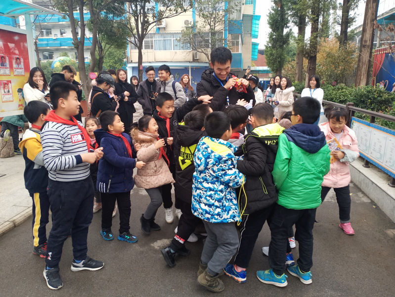 到达小学后,学生们已经放学了。协会成员在校内集合,会长唐睿简单的说了一下各成员要注意的事项,然后各自去找对应班级进行讲课,校园里充满了欢声笑语,我们在学生们眼中的形象应该是大哥哥大姐姐啦,所以学生们都特别开心,围我们要糖吃,特别可爱。