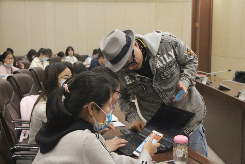 图为刘先生与学生互动 摄影:张思晨