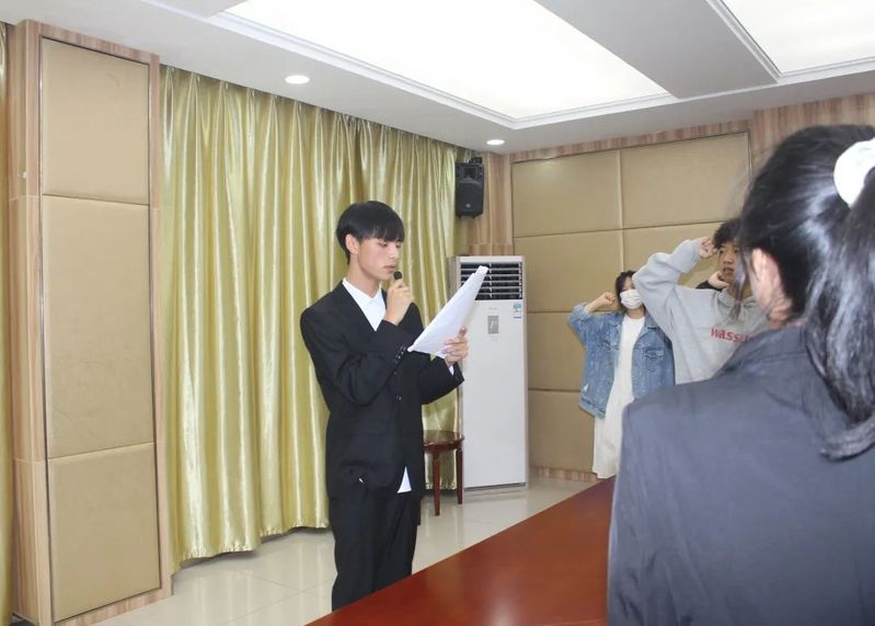 各部门干事发言结束后,秘书处部长苏鹏带领全体学生会成员宣读誓词。