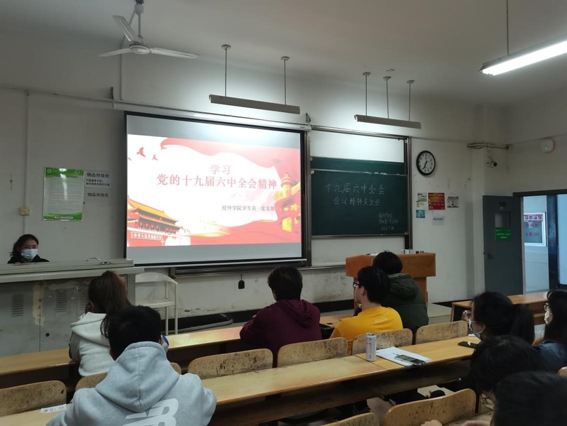 2021年11月18日,中共BB贝博艾弗森官方网站经济与商务外语学院学生第一党支部召开会议,传达学习2021年11月8日至11日在北京召开的中国共产党第十九届中央委员会第六次全体会议。