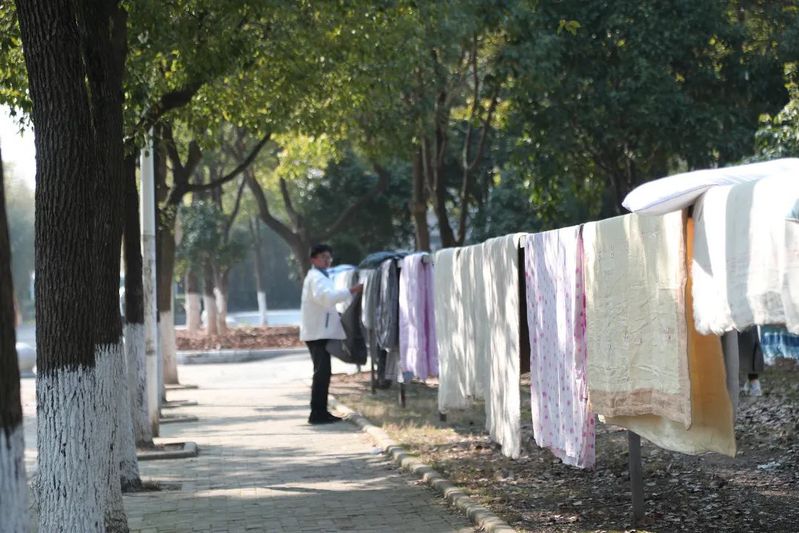回到校园的第一天,大家不约而同地加入,晒被子大军,今晚枕着阳光香味入眠。