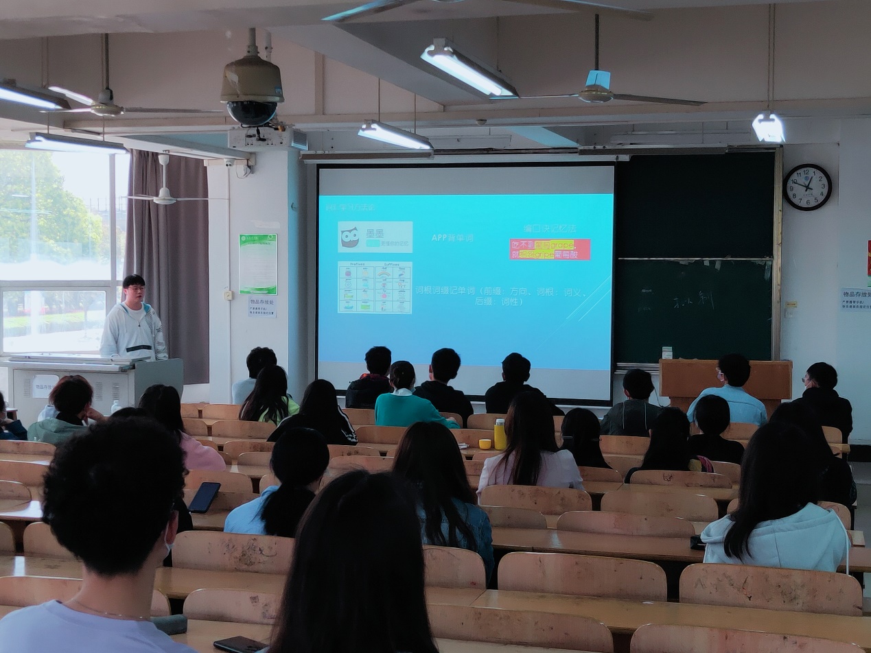 公共外语系教师、全国大学生英语竞赛指导团队教师及爱好英语的学生参加了分享会。分享会上,周子豪同学主要结合全国大学生英语竞赛近年的题型、自身的备赛和参赛经验以及答题方法技巧进行了经验和心得分享。过程中,他还结合自己的英语学习方法分享所使用的课外学习资源和材料来源,并以讲练结合的方式分享个人对学习材料的处理方法及所获,最后还结合自身的目标强调了英语学习的重要性。