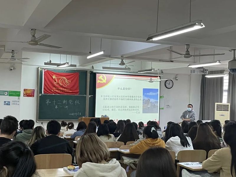 2022年4月29日,经济与商务外语学院党课培训第十三期第一讲在综合楼207进行。本次培训由经济与商务外语学院党总支书记胡航书记主讲。