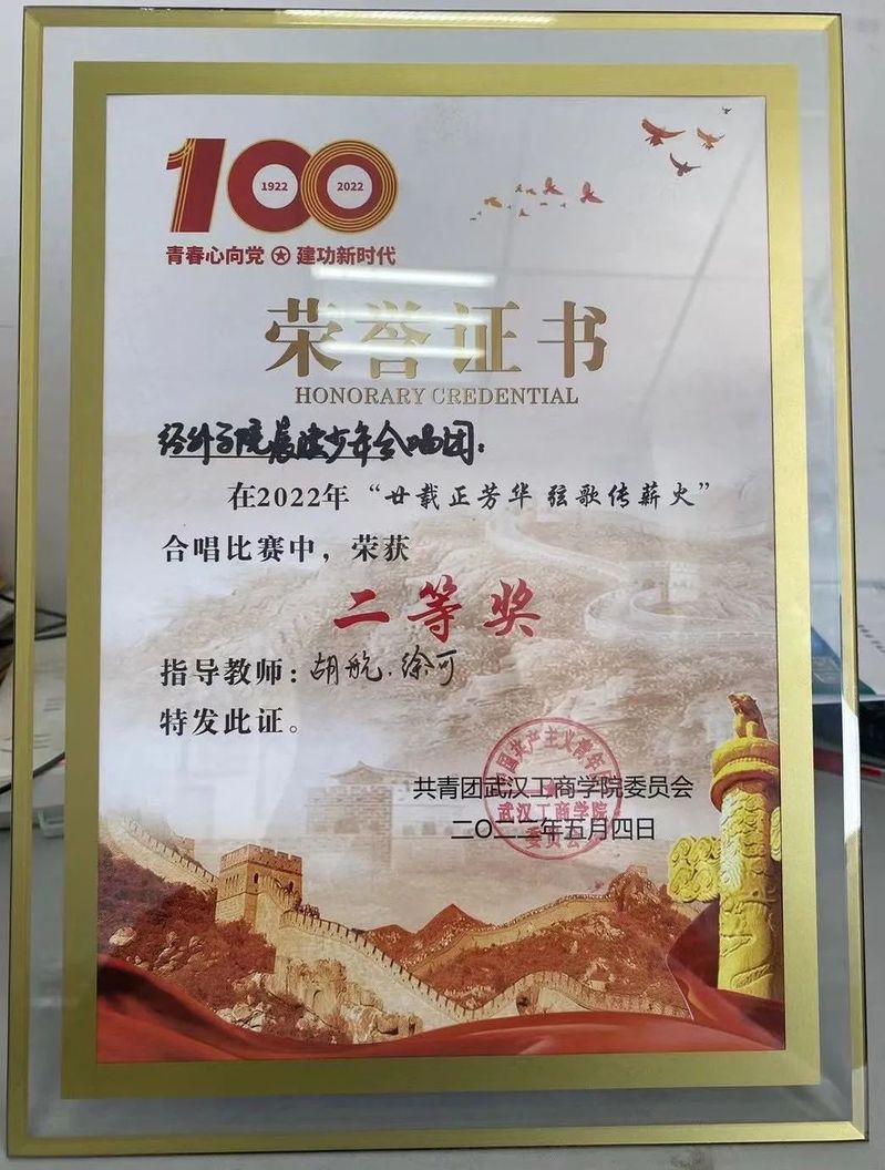 经过激烈的角逐,经济与商务外语学院晨读少年合唱团在本次合唱比赛中,荣获“二等奖”。