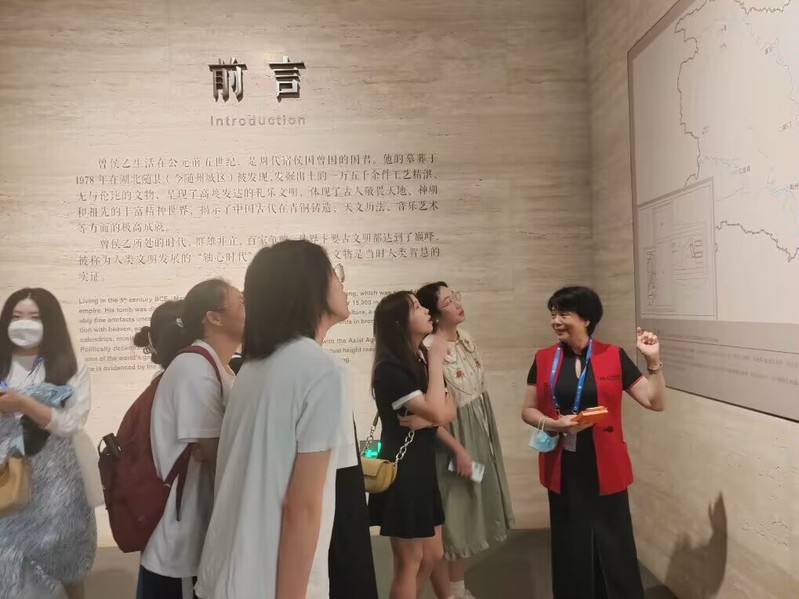 经济与商务与学院新闻中心讯(记者 杨萌)为响应习近平总书记 “要在提炼、转化、融合上下功夫,让收藏在馆所里的文物、陈列在大地上的遗产、书写在古籍里的文字成为教书育人的丰厚资源”号召。结合“中国文化概论”课程进度,2023年6月11日下午,BB贝博艾弗森官方网站经济与商务外语学院刘芬老师兼湖北省博物馆志愿者讲解员在湖北省博物馆社教部志愿者团队老师们的支持帮助下,在博物馆为学生们开展中国文化教育,将课程思政落实到博物馆参观学习中,在具体的文化场景,培养学生们的综合文化素养、家国情怀和文化自信。
