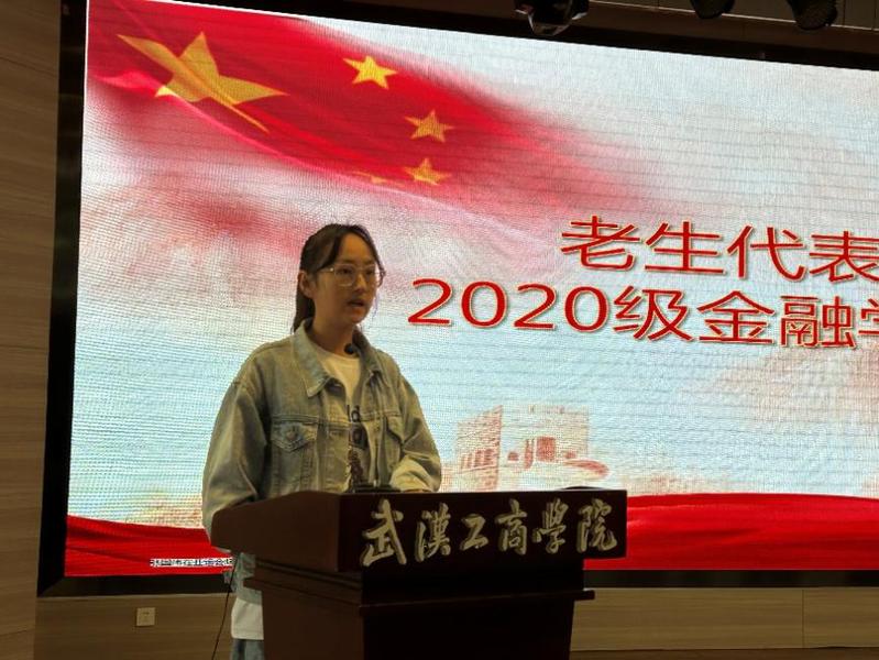 随后,老生代表尹芳发言,向新生们分享自己的大学生活经历,希望大家对自己有一个大目标,同时有一份好心态,珍惜时间,认真对待每一门课程,努力做好每一个环节,不能因为懒惰或不感兴趣而放任自己。