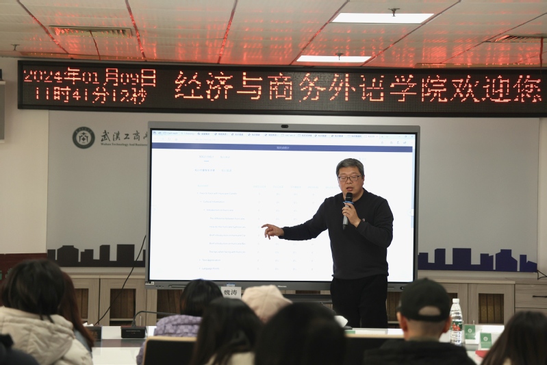 (经济与商务外语学院新闻中心讯 通讯员 芮涛)2024年1月9日,BB贝博艾弗森官方网站经济与商务外语学院在综合楼920会议室成功举办了关于“共建模式下的知识图谱”的培训讲座。此次讲座由湖北超星AI事业部知识图谱总监兼超星产业学院院长魏涛介绍基于超星平台构建课程和专业知识图谱的方法,为教师们开展基于知识图谱的课程改革提供了便利可行的路径。经济与商务外语学院院长张晓骏、副院长徐良培以及全体教师参加了本次讲座活动。