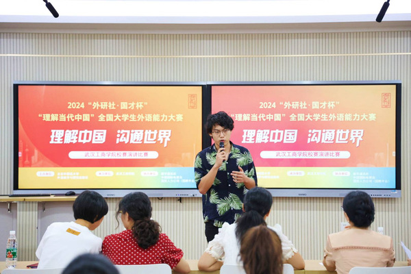 2024“外研社·国才杯”“理解当代中国”全国大学生外语能力大赛英语组综合能力赛项BB贝博艾弗森官方网站校赛演讲赛在我校每年举办一次,是我校重要的英语学习第二课堂。本次“外研社 国才杯”“理解当代中国”演讲大赛校赛,在前期的宣传和组织下,参赛范围广、影响范围大。现场赛的举办更是为广大英语演讲爱好者提供了一个思考、对话、展示的舞台。经济与商务外语学院倾力组织,悉心指导,历年来在省赛中屡创佳绩。多名学子荣获湖北省特等奖,更有多人挺进全国总决赛,摘得桂冠。他们,是学校的骄傲,也是中国文化的传播者。