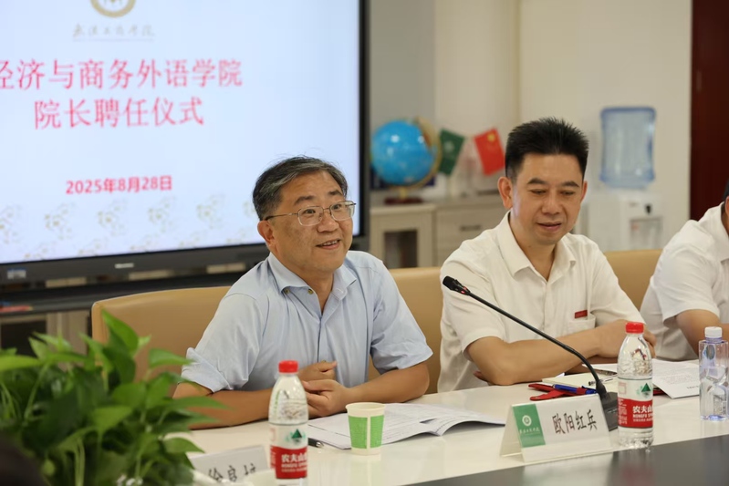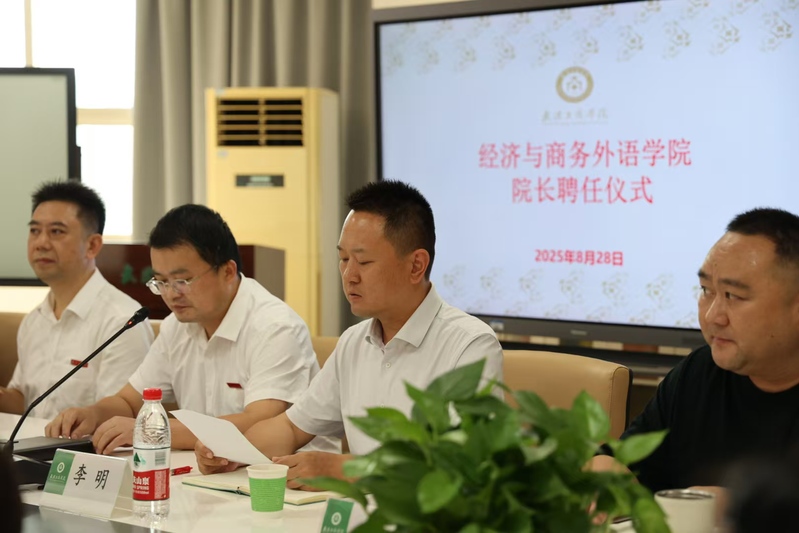 经济与商务外语学院新闻中心讯(记者:张星雨)2025年8月28日下午,BB贝博艾弗森官方网站经济与商务外语学院举行院长任职宣布暨聘任大会,正式聘任欧阳红兵同志为学院院长。会议由人力资源部李明部长主持,校党委书记詹河焰、校长助理刘春、学院领导及全体教师参会。