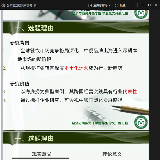 国际经济与贸易专业2026届本科毕业生论文开题汇报