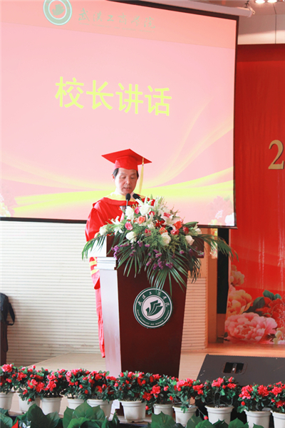 副校长卢炎生教授公布了14届毕业学生情况,并对顺利取得学位的表示祝贺。党委副书记向太斌宣读了优秀毕业生的决定,校长张金隆、党委书记陈伟为优秀毕业生代表颁奖。接着,毕业生代表熊苾均发言,感谢四年来领导的关怀,老师的教导,同学的鼓励帮助,最后一段校园回忆的深情排比句引得老师同学泪眼婆娑。教师代表范红霞给同学们上最后一课,用几个哲理小故事告诉大家无论什么时候都不要停止学习,无论什么时候都不要怠慢工作。