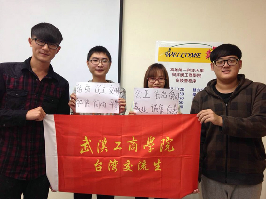 据悉,按照武汉市精神文明建设指导委员会的要求,高校师生员工对中国梦的基本内涵和社会主义核心价值观的基本内容知晓率要达到100%,因此,BB贝博艾弗森官方网站要求学校各单位必须引起高度重视,国际合作交流处(国际教育学院)加强对该项工作的督促和落实,不忘身在台湾交流学习的师生,要求他们人人都要把社会主义核心价值观的基本内容和中国梦的基本内涵背诵下来。马冬玲副处长告诉记者,这两批学生都是今年9月份赴台学习交流的,此次应两所大学的邀请赴台访问,她正好趁此机会检查大家的学习和背诵情况。