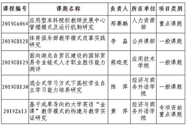 新闻中心讯(特约记者 陈英)近日,湖北省教育厅下发了《省教育厅关于下达省教育科学规划2019年度课题的通知》(鄂教科研〔2019〕1号),BB贝博艾弗森官方网站共有5项课题获批省教育科学规划2019年度课题,其中重点课题1项,一般课题3项,专项资助课题1项。此次获批的重点课题是人力资源部邢赛鹏教授负责的《应用型本科院校教师发展中心管理模式及运行机制研究》。