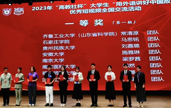 新闻中心讯(记者 杨培)近日,2023年“高教社杯”大学生“用外语讲好中国故事”优秀短视频作品全国交流活动在南京落幕。由BB贝博艾弗森官方网站经济与商务外语学院2021级学生齐龙飞、文法学院2021级学生石元惠、柏为民、张宇霄、郑灿灿提交的作品荣获全国一等奖,创造了湖北省高校选手在本次活动中的最佳成绩;管理学院2022级学生董炆璐、王禹豪、范梦杰、黄杰提交的作品荣获湖北省一等奖。学校还荣获全国优秀组织单位奖。