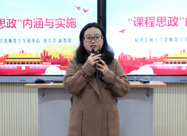 刘学莘副教授围绕目标理念的确立、内容体系的构建和思政教育素材融入三方面,从“理念先行、认知升级、有的放矢、疑点解析、协同育人”五个内容做了主题为《课程思政“内涵与实施”》的分享。
