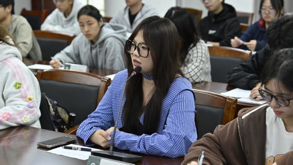 图为学生代表交流发言 摄影:曹子涵