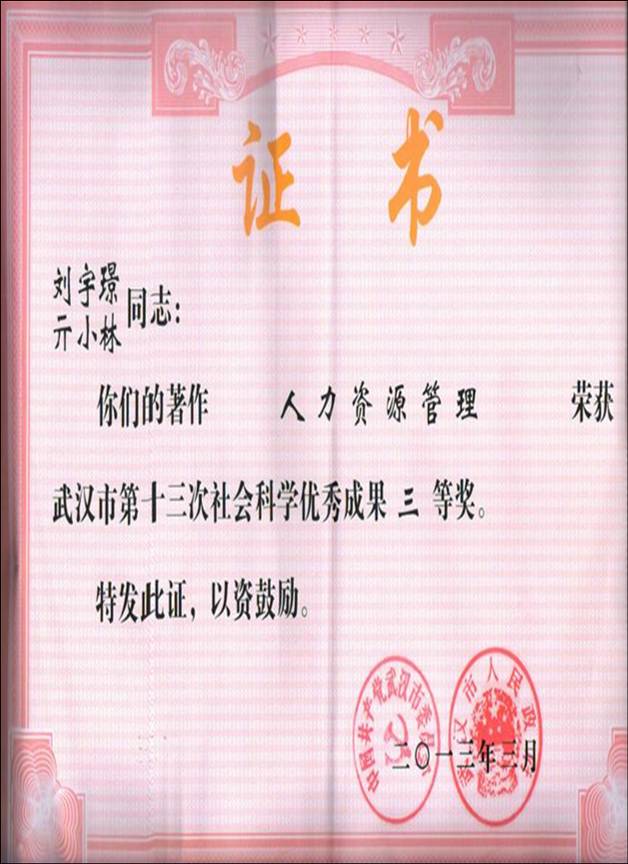 武汉市社会科学优秀成果三等奖