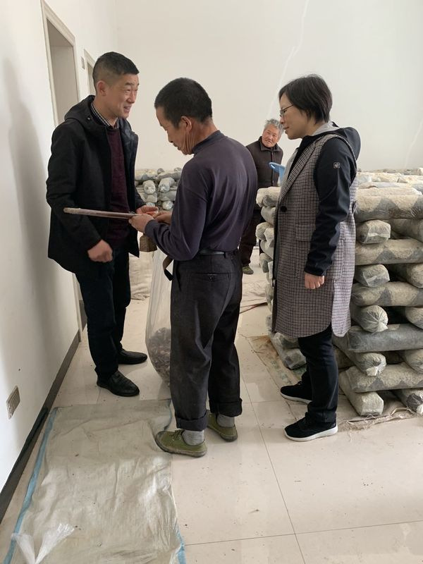 我们去的第二家在一个小山坡上,一进院子,就被满院的香菇和满屋的香菇棒震撼了——这一家子正在拾掇满满的收获呢。户主老大爷自己身体不好,还有患病多年的老伴和儿子,都不是健壮的劳动力,生活极其艰难。在国家精准脱贫攻略的指导下,村委帮助老人翻新了旧房,指导老人家在家自主创业,充分利用自家小院建成规模不等的香菇基地,巧妙解决了收入困难问题。这不仅激发了他们一家的内生动力,也让他们能够有可持续的发展力。我们实践小分队的党员教师们既被这一家子的不易和勤劳感动,也被村干部始终践行“为人民服务”所触动,纷纷解囊购买这院子里有名的“随县香菇”。
