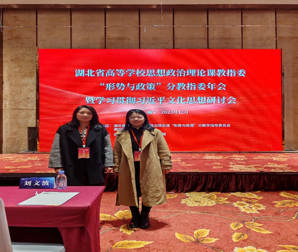 (通讯员 郑欣)2023年12月9日,湖北省高等学校思想政治理论课教指委“形势与政策”分教指委年会暨学习贯彻习近平文化思想研讨会在咸宁市举行。参会代表来自全省56所高校马克思主义学院,我校马克思主义学院习概与形策教研室胡瑾、郑欣出席了会议。会议议程由主题报告、院长论坛、教学展示和专题研讨四大板块构成,议程衔接紧凑,次序井然。闭幕环节还邀请到湖北省教育厅思政处副处长王立彬致辞。一天的会议内容丰富,干货满满。
