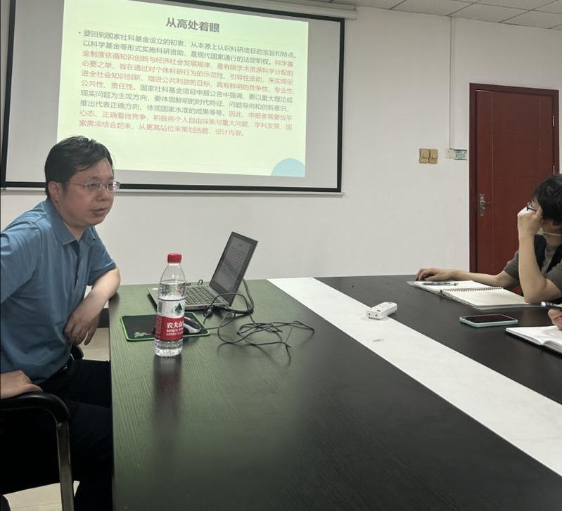 冯教授从选题、学术史梳理、价值论证、研究对象与框架思路、重点难点、主要目标、研究计划及可行性、特色和创新、成果及其预期社会效益、参考文献这十个环节,深入细致地为老师们讲授了如何进行国家社科基金项目申请书的撰写。并强调课题申报要坚持努力申报、静心等待、坦然接受、持续改进的正确态度。