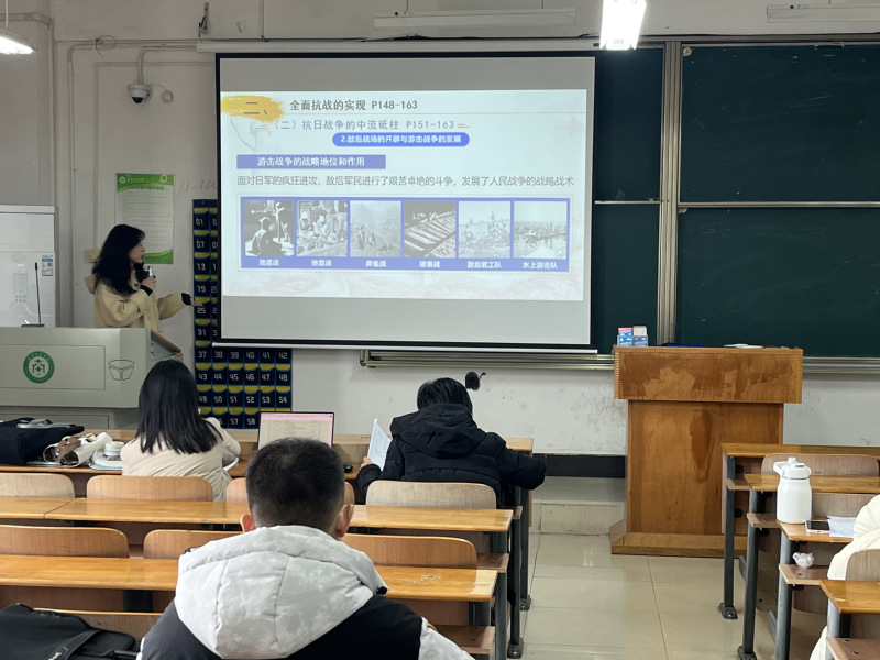 磨课会上,罗铭璇等近两年新入职教师利用板书、PPT,结合丰富的案例,带来了精彩展示。老师们在讲授过程中展现了扎实的专业知识和对历史的深刻理解,巧妙地运用案例广泛拓展了相关知识点,使得整个课堂内容既有深度又有广度。