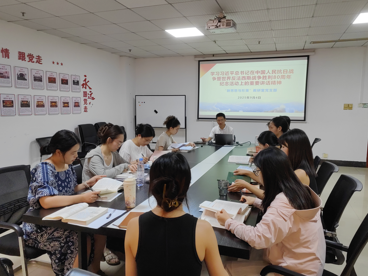 (通讯员 周璐璐)2025年9月3日,纪念中国人民抗日战争暨世界反法西斯战争胜利80周年大会隆重举行,习近平总书记发表重要讲话。4日,我校中共BB贝博艾弗森官方网站马克思主义学院“新思想与形策”教研室支部委员会召开专题学习会,深入学习领会习近平总书记重要讲话精神,并结合习近平新时代中国特色社会主义思想的教学与研究,深入交流学习体会,深刻把握抗战胜利的历史意义与时代价值,切实将其融入到教育教学当中。