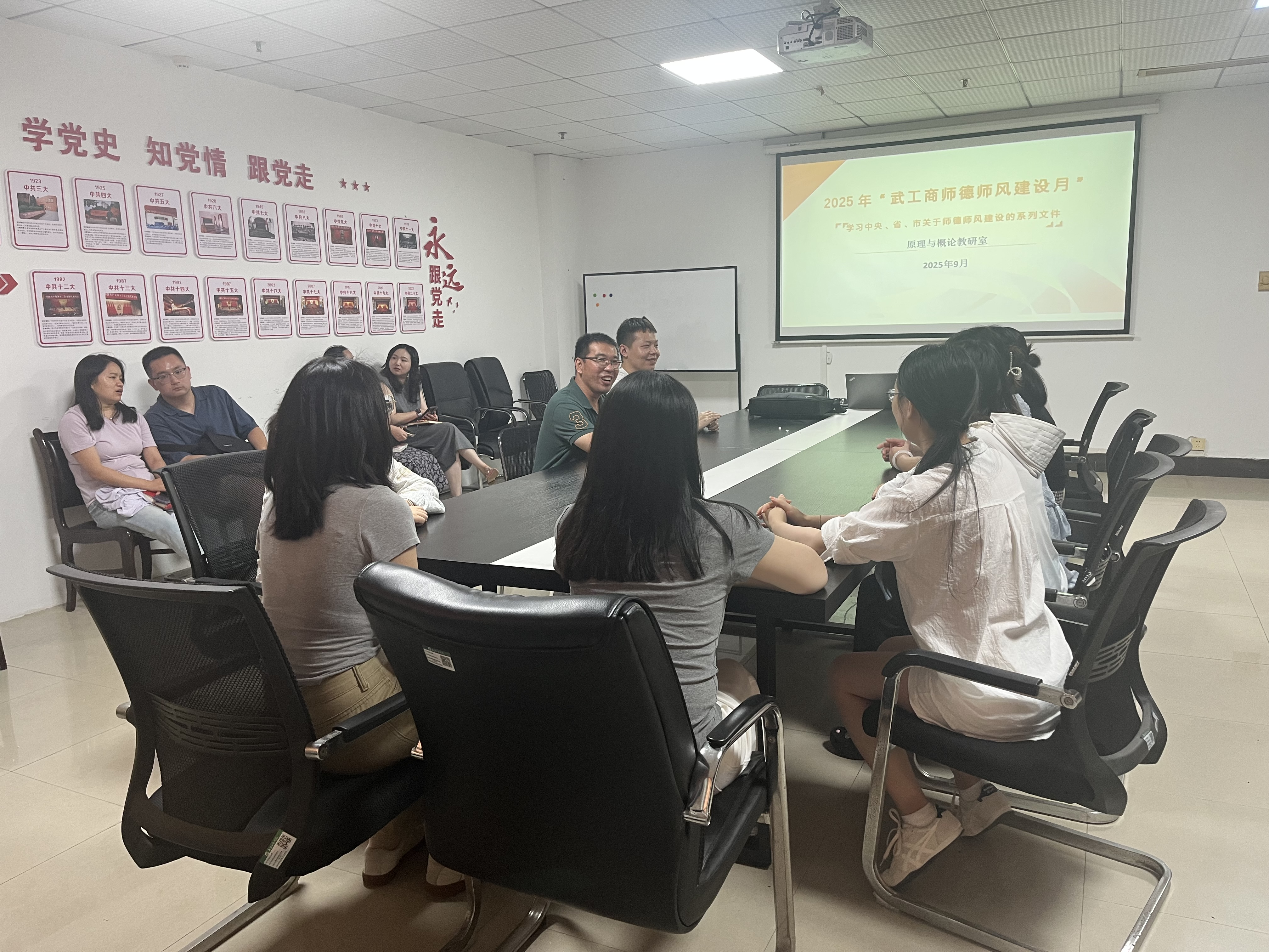 (通讯员 余荣荣)为深入贯彻落实习近平总书记关于建设教育强国的重要论述,强化教师队伍思想政治与职业道德建设,2025年9月4日,“原理与概论”教研室组织全体教师开展师德师风专题学习活动,引导教师坚守师德红线、筑牢育人初心,全力打造新时代高素质思政教师队伍。