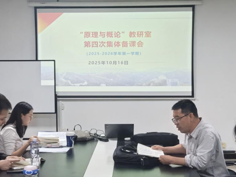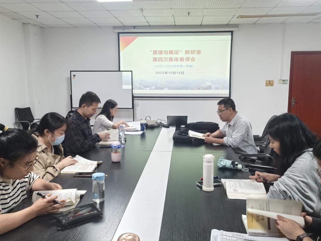 (通讯员 连雨薇)2025年10月16日晚,马克思主义学院“原理与概论”教研室在综合楼1102会议室开展了本学期第四次集体备课会。本次备课会由孟凡明老师主讲,参会人员为“原理与概论”教研室全体老师。