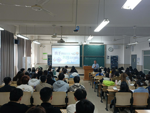 授课伊始,校党委副书记幸福堂从中国周边外交的历史脉络切入,结合当前国际形势阐明了专题开设的核心缘由。他指出,周边是中国安身立命之所、发展繁荣之基,新时代周边外交是中国特色大国外交的重要支柱,青年大学生作为国家未来发展的中坚力量,必须清晰把握周边外交的战略要义,才能在民族复兴进程中找准定位、贡献力量。