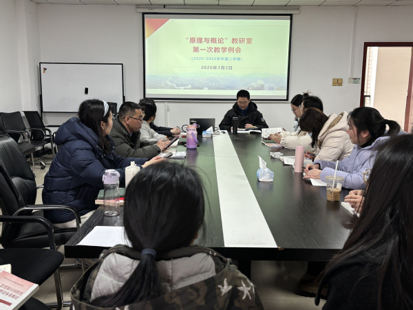 (通讯员 高傲宇)为扎实推进2025—2026学年第二学期思政课教学工作,切实提升《毛泽东思想和中国特色社会主义理论体系概论》课程育人质量,马克思主义学院“原理与概论”教研室于2026年3月2日在会议室1102召开新学期第一次教学工作例会,全体任课教师参会围绕课程教学安排、教研教改、质量提升等重点内容开展研讨。