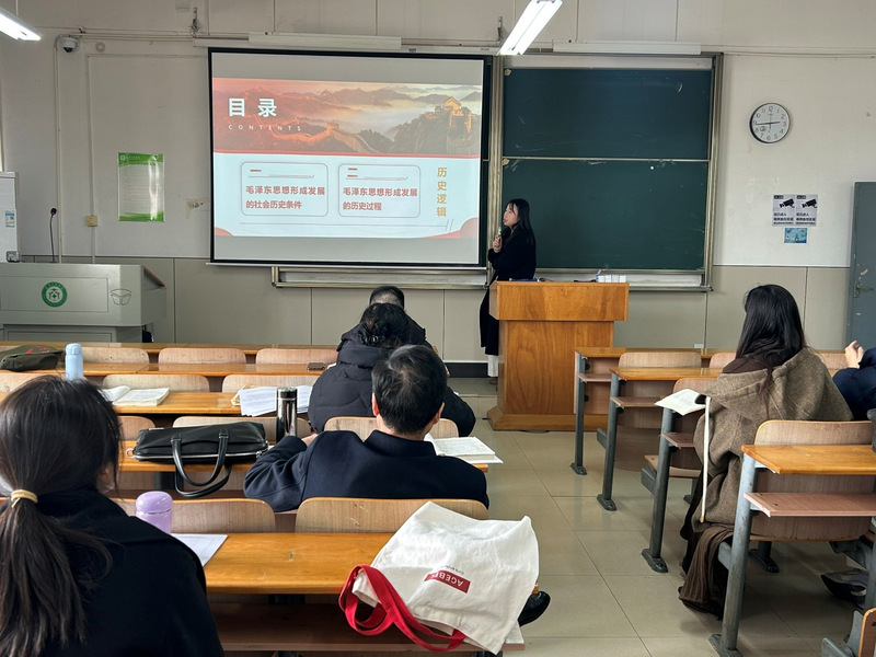 本次磨课由两位青年教师依次进行授课展示。汪雅乔老师以“马克思主义中国化时代化的历史进程与理论成果”为主题,系统讲解了马克思主义中国化时代化的提出背景与核心内涵,逻辑清晰、重点突出。汪佳琪老师围绕“毛泽东思想的形成和发展”展开教学,从历史条件与发展过程两大维度切入,以“毛泽东思想是什么?”这一问题为牵引,层层递进、循循善诱,充分体现问题导向式教学思路。
