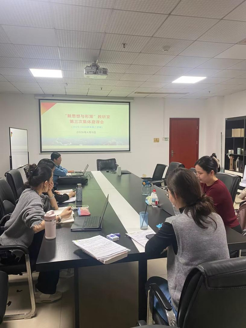 (通讯员 张建宇)为持续深化思想政治理论课教学改革,切实提升《习近平新时代中国特色社会主义思想》课程教学质量与育人实效,4月9日上午9点,马克思主义学院“新思想与形策”教研室在1102会议室开展了第三次集体磨课活动。本次活动聚焦课程第四章“坚持以人民为中心”教学内容打磨,由徐晓华老师主讲示范,学院全体思政课教师参与听课与研讨,在交流互鉴中凝聚教学共识、优化教学方案。