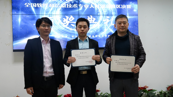 刘兵老师作为“优秀指导老师”发表感言。他谈到,参与“蓝桥杯”比赛是一次非常难忘,也是收获颇丰的体验,其一,为学生未来就业增加筹码,其二,提升学生的专业技术技能,其三,让学生面对困难时学会坚持。