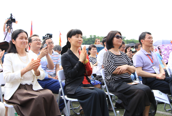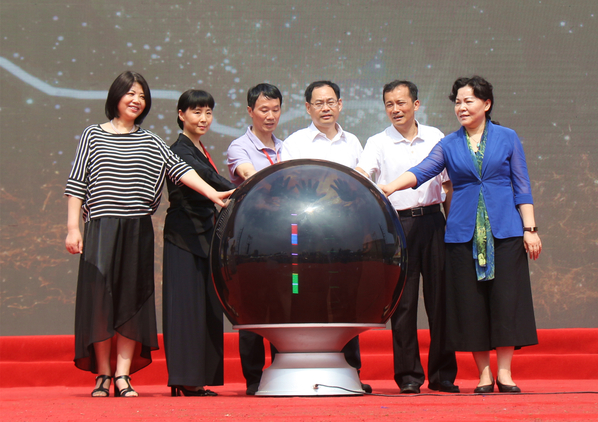 图为参加龙舟文化节的领导共同启动开幕球  摄影:胡爽