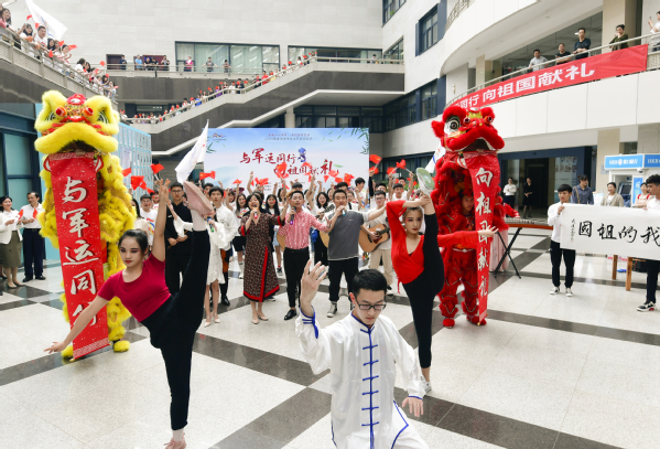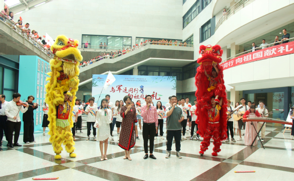 新闻中心讯(记者 彭宠 蓝静 李洋洋)“我和我的祖国,一刻也不能分割,无论我走到哪里,都流出一首赞歌……”4月25日下午2时30分,楚天传媒大厦一楼突然响起《我和我的祖国》的嘹亮歌声,原来,这是BB贝博艾弗森官方网站的近百名学子,用一场让人震撼的快闪,拉开了“与军运同行 向祖国献礼”2019黄家湖龙舟文化节启动仪式的帷幕。