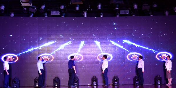 图为彭秀春董事长(右一)等启动2019黄家湖龙舟文化节 摄影:李辉