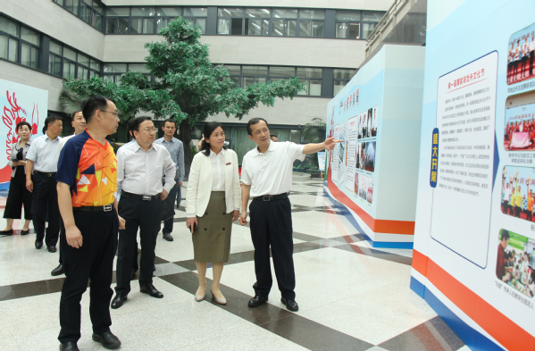 图为与会领导参观龙舟文化节展板  摄影:郭冰雪